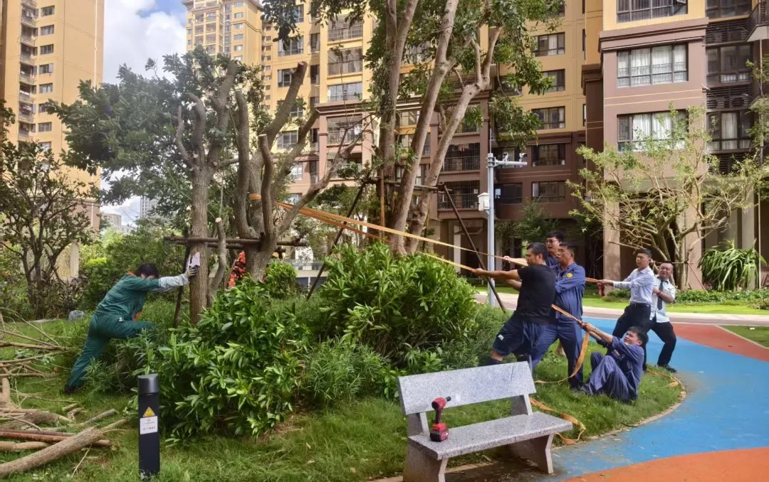 今年第21号台风“麦德姆”于10月5日14时50分在湛江市徐闻县东部沿海登陆,风雨骤临,广东佳品生活服务有限公司各项目迅速进入应急状态。面对部分园区树木倾倒、地下车库、道路积水等险情,第一时间启动应急处置机制,统筹部署抢险与恢复工作,全力保障业主们的生命财产安全。